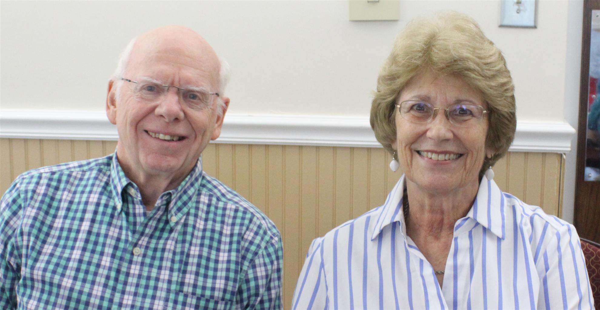 Ronnie Tewksbury receives a check for "Friends of the Library" and Martha Thurman receives a check for the Ferst Foundation. |