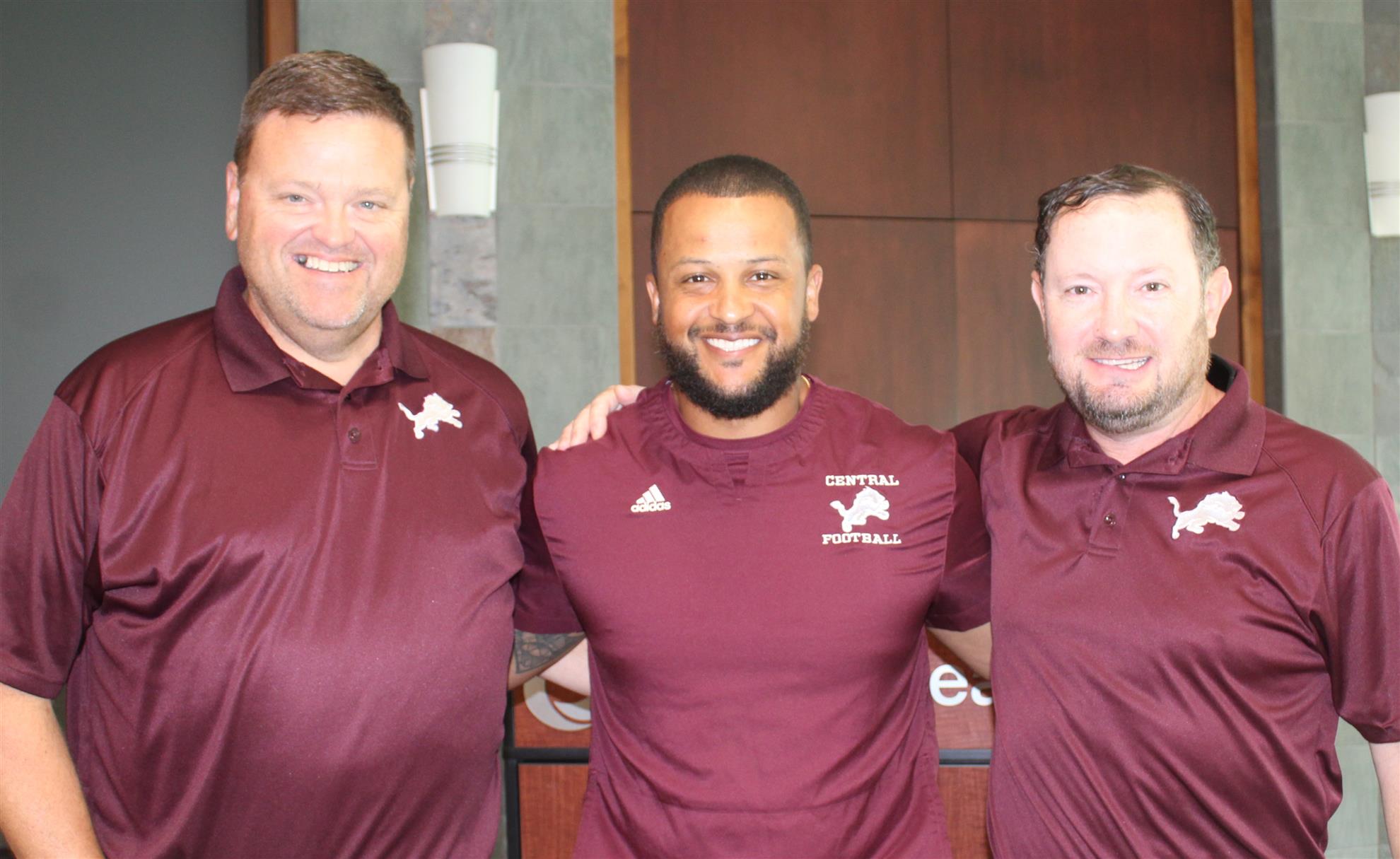 Central Principal Dana Harman welcomes football coach Grant Chestnut and Carroll County School Superintendent Scott Cowart to the Carrollton Kiwanis Club. Coach Chestnut spoke to the Kiwanis Club on the excitement and challenges of coaching the Central Lion's football team.